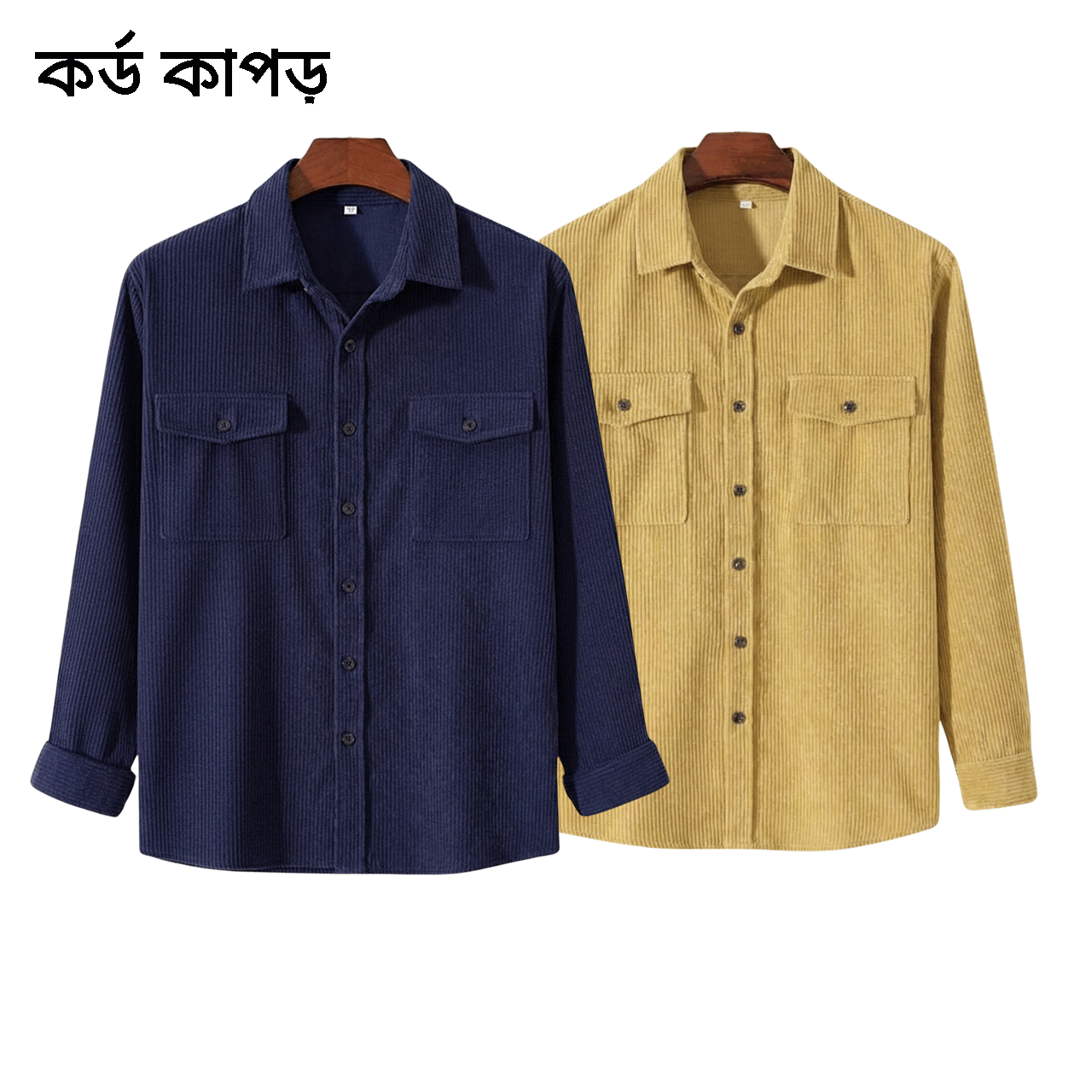 2 Pcs Cord Full Sleeve Shirt – Navy +Coffee